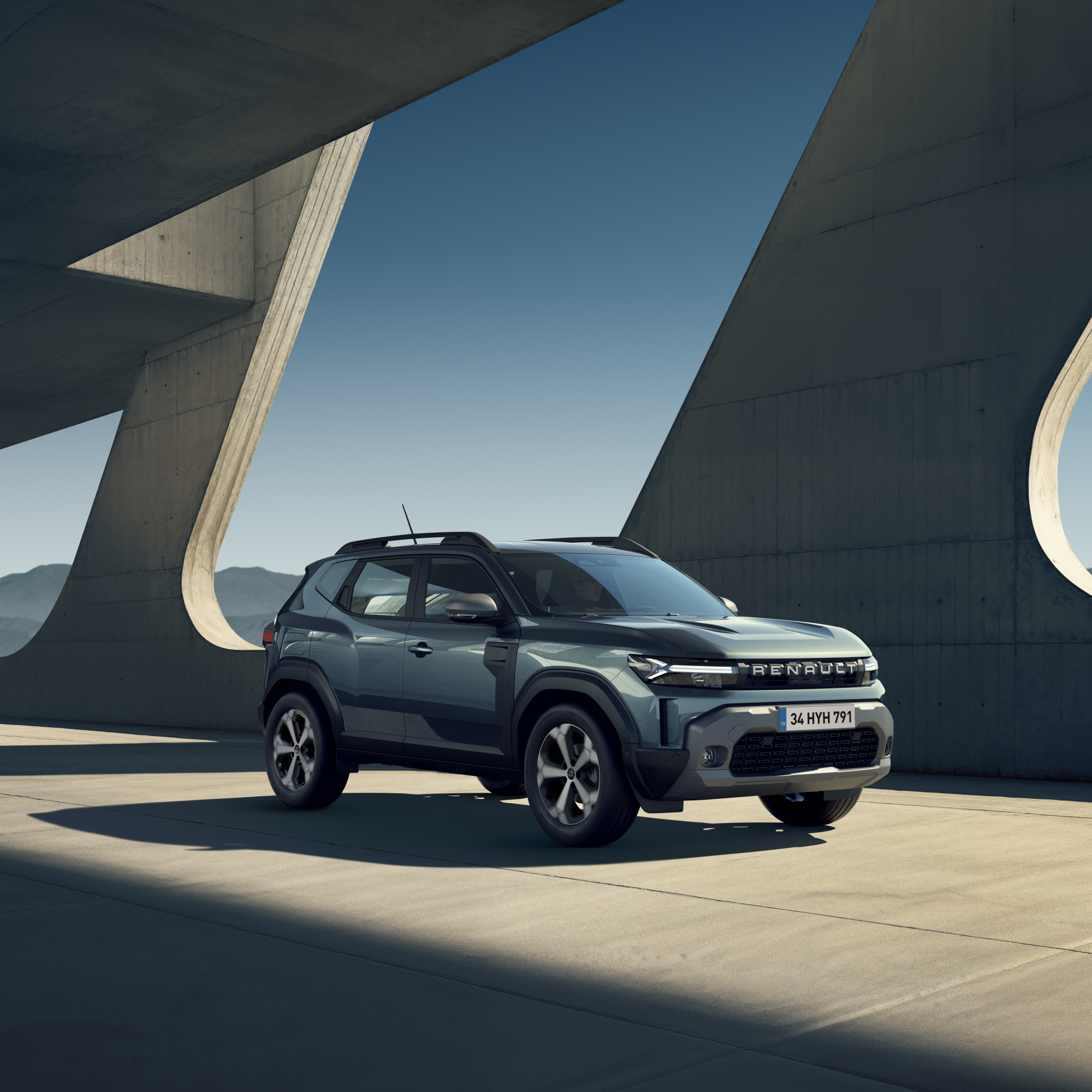 Duster отримав переконливий дизайн позашляховика з виразною передньою решіткою з написом Renault, модульованими рейлінгами та посиленими колісними арками.
