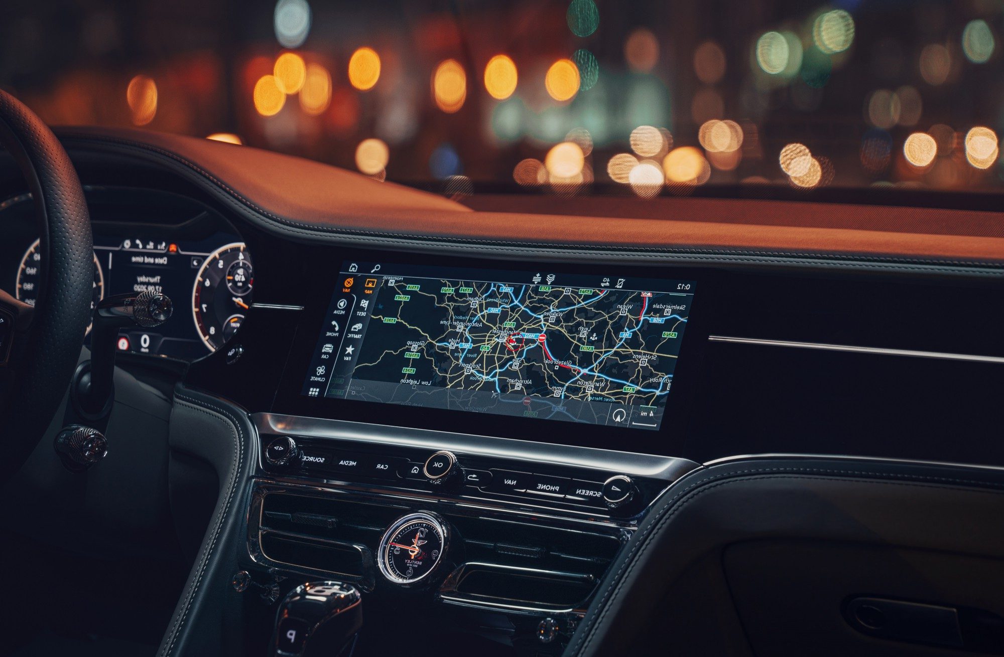 Новий Flying Spur V8 пропонує перший обертовий дисплей Bentley, що підтримує Apple CarPlay® та відтворює фотореалістичні ландшафти за допомогою супутникових карт і завчасно попереджає про зміну дорожніх умов.
