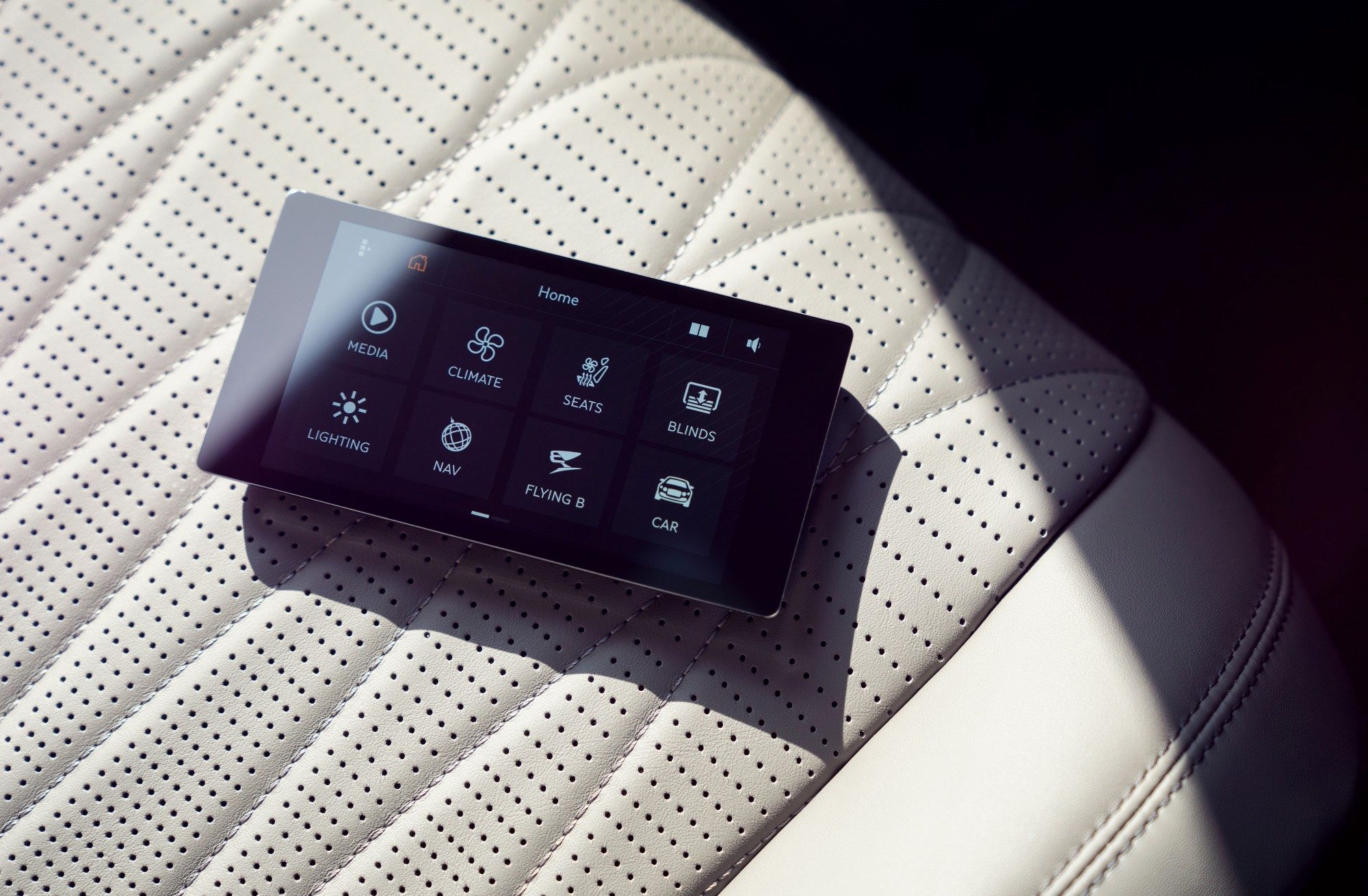 Пасажирська задня частина салону оснащена абсолютно новим пультом дистанційного керування з сенсорним екраном. За допомогою пульта ви матимете доступ до налаштувань управління всіма жалюзі, функцією масажу на задньому сидінні і заднім клімат-контролем, а також керуванням попередньо встановленими конфігураціями, наприклад, освітленням салону (специфікація Mood Lighting).