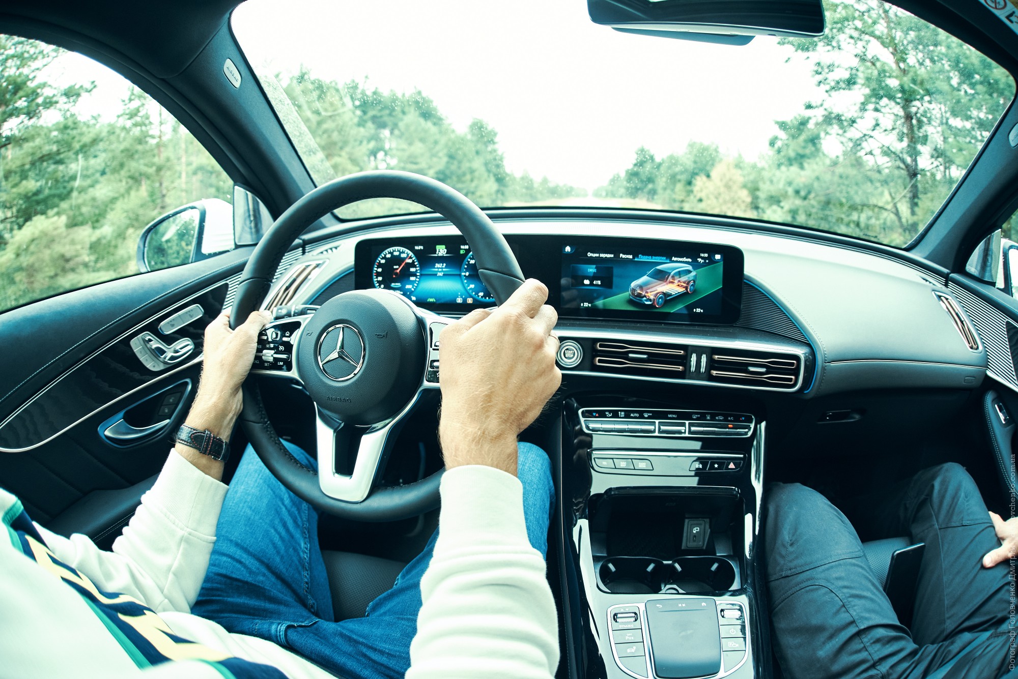 А ось для повністю електричного Mercedes-Benz EQC з його батареєю на 80 кВт*год потрібна зарядка потужніша. Тому його вмикаємо в «розетку» Type 2, на якій 22 кВт потужності. Потужний електричний кросовер демонструє не аби яку спритність, що оцінили наші експерти. Ще б пак. Потужність моделі близько 408 к.с. а крутний момент двигунів сягає 760 Нм.